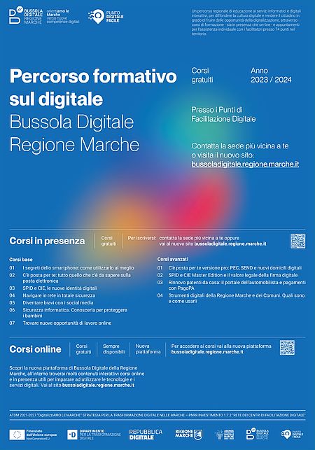 Con il progetto Bussola Digitale della Regione Marche, a cui il Comune di Gabicce Mare ha aderito a luglio scorso attivando un punto di Facilitazione presso la sede comunale, sono partiti i corsi gratuiti del percorso formativo sul digitale.
