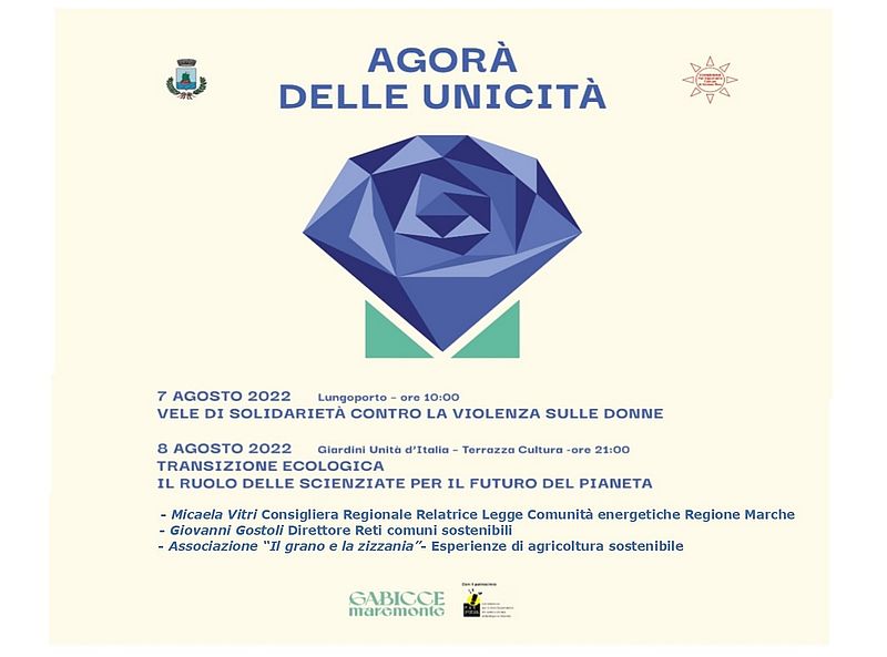 Ultimi due appuntamenti per la rassegna Agorà delle Unicità organizzata dal Comune di Gabicce Mare e dalla Commissione Comunale per le Pari Opportunità con il Patrocinio della Commissione per le Pari Opportunità della Regione Marche.