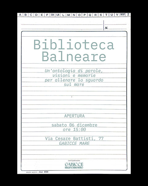 Un progetto che trova casa nella nuova sede de L’Altro Mare a Gabicce Mare in omaggio alla vecchia Biblioteca Comunale, luogo simbolo di conoscenza e identità collettiva.
