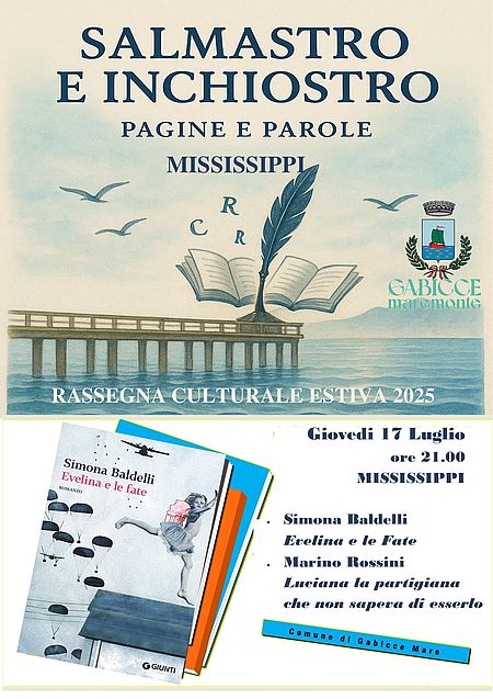 Prosegue con grande interesse la rassegna letteraria Salmastro e inchiostro, giunta al suo terzo appuntamento. In questa occasione saranno protagonisti due autori legati al territorio e alla memoria collettiva: Simona Baldelli, scrittrice marchigiana di origine, e Marino Rossini, autore, insieme alla figlia Giorgia, di un racconto ispirato alla storia della madre e al suo impegno nella Resistenza.